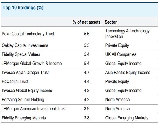 Top Ten Holdings are:-