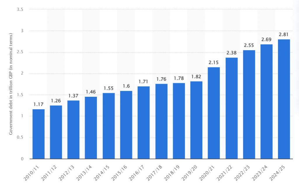 We are fortunate, while the global banking and financial markets still has the confidence in HM Government to buy the Gilts (Lend money to the UK), the budget deficit keeps rising. What is also alarming, is the dates these bonds maturing from 2028 to 2063. All long-term borrowings, we are mortgaging our futures, but at least “We Are In It Together……“