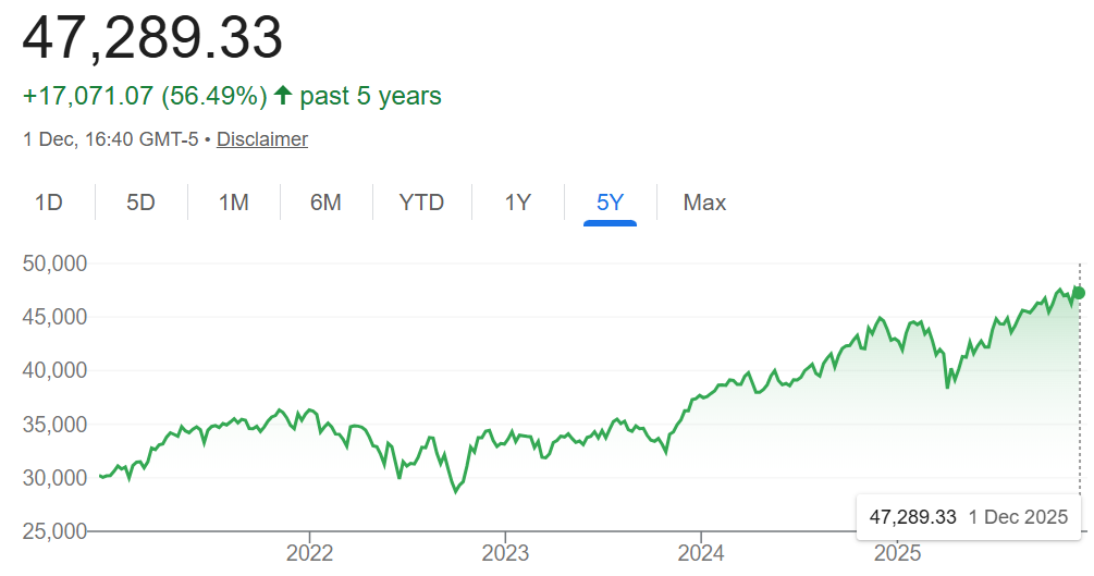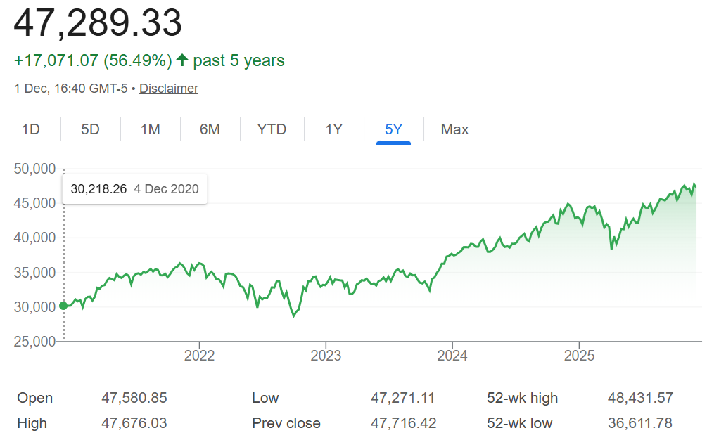 On 4th Dec 2020 The Dow was 30,218 Points.