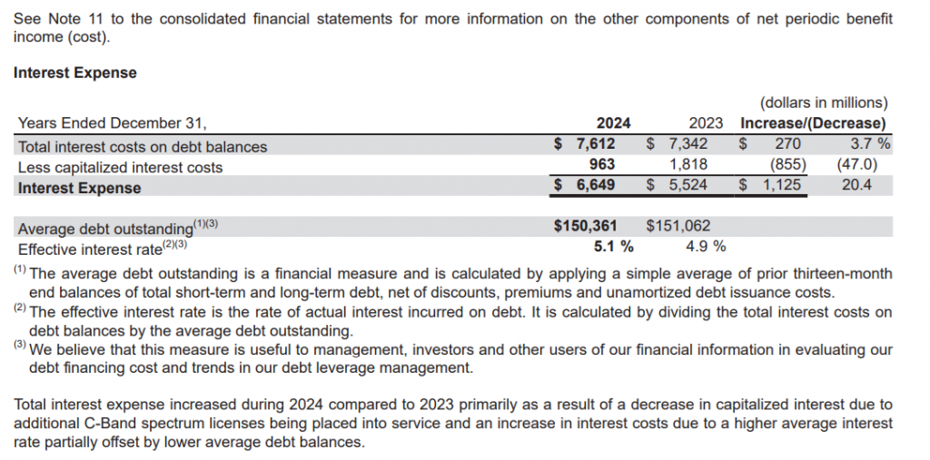 From the 2024 annual report (the latest one published) we can see the interest payments on Verizon’s total debt is $7612 Million = £7.612 Billion.