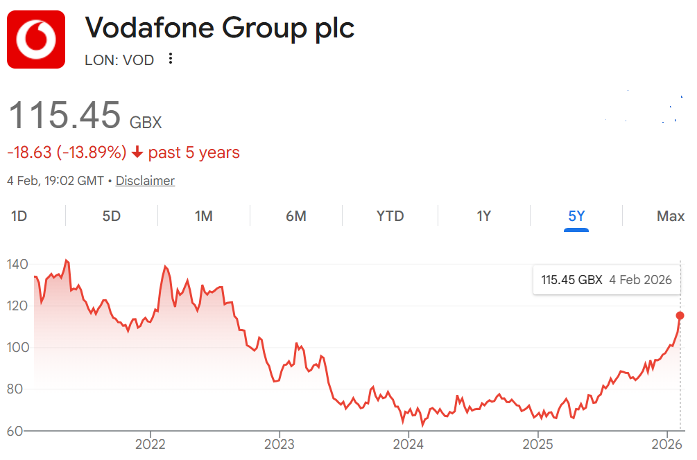 Today, Thursday 5th Feb 2026, Vodafone, the UK’s 2nd telecommunications company (BT being the premier player https://www.bt.com), pays out its dividend.