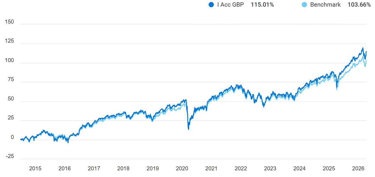 The M&G Global Themes Fund aims to provide a combination of capital growth and income to deliver a return that is higher, net of the ongoing charge figure, than that of the MSCI ACWI Index over any five-year period. It does this by investing at least 80% of the fund in the shares of companies the fund manager believes are positioned to benefit from structural trends in the global economy. These can be in any sector, of any market capitalisation and domiciled in any country, including emerging markets.