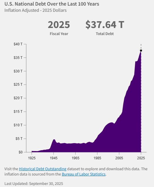 US National Debt: $37.64 Trillion, annual interest payments $1216 Billion ($1.216 Trillion) Leave a reply Courtesy of Understanding the National Debt | U.S. Treasury Fiscal Data Courtesy of Understanding the National Debt | U.S. Treasury Fiscal Data
