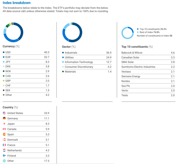 The L&G Clean Energy UCITS ETF (the “ETF”) aims to track the performance of the Solactive Clean Energy Index NTR (the “Index”).